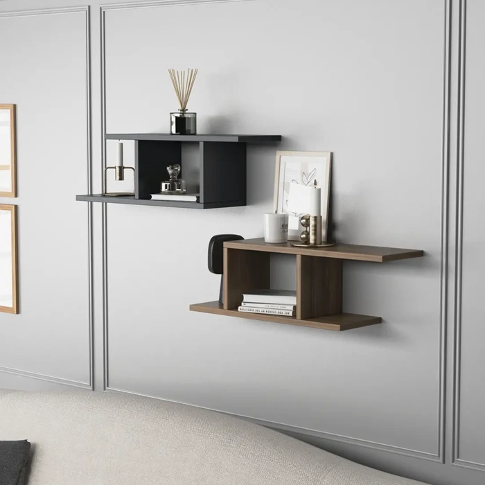 Enhance your living space with the Deren Plus wall shelf in anthracite walnut, exclusively. Combining contemporary design with practical features, this wall shelf is perfect for any modern home or office, providing a stylish solution for your storage needs.