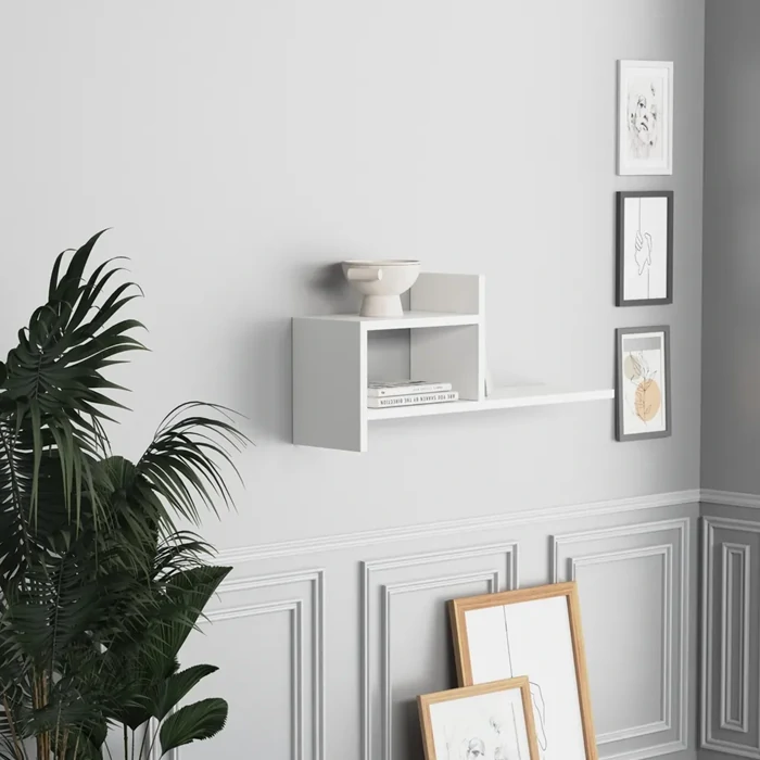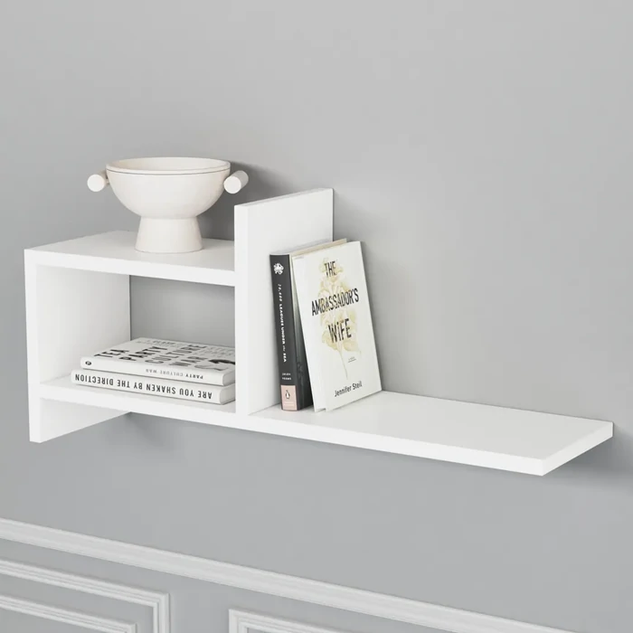 Enhance your living space with the Hisar wall shelf in white, exclusively. This stylish and functional shelf combines contemporary design with practical storage solutions, making it a perfect addition to any modern home or office.